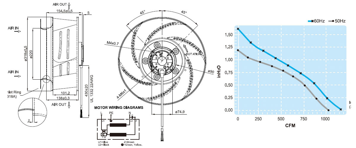 UF318AAA11H1C4A臺灣福佑離心風機油煙凈化注塑機擠出機散熱風扇
