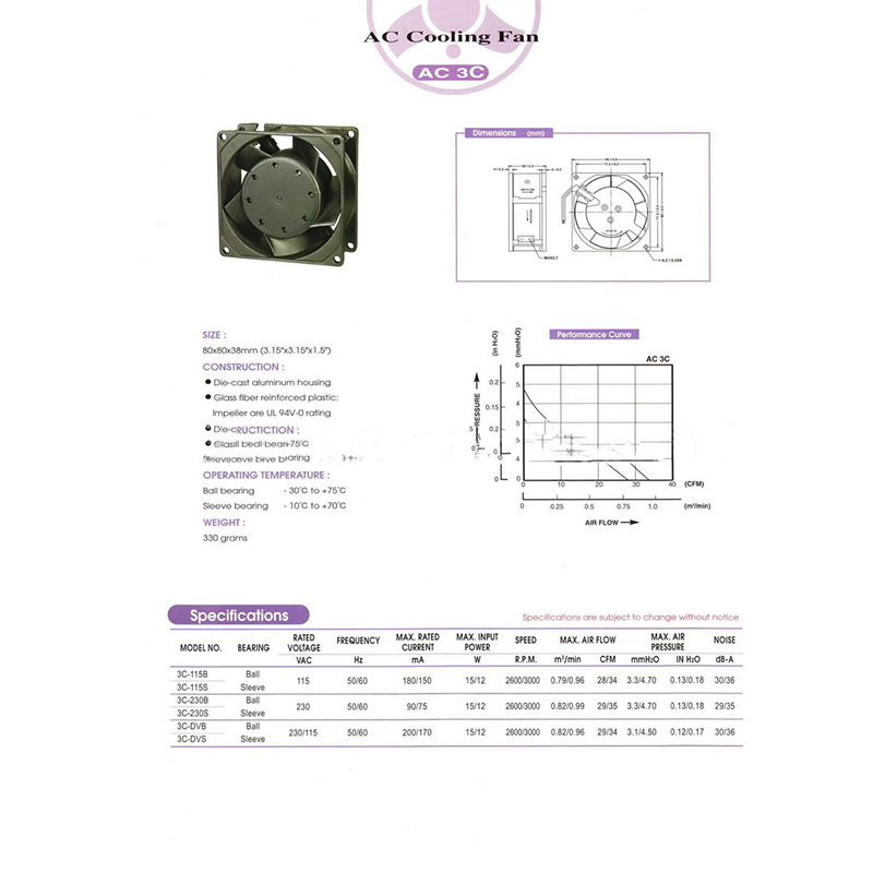 原裝臺灣Bi-Sonic百瑞3C-230HB軸流雙滾珠軸承機(jī)械設(shè)備軸流風(fēng)扇