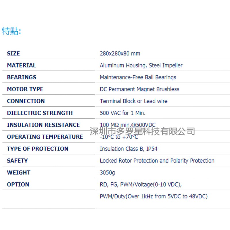 公司簡介:深圳市多羅星科技成立于2003年,位于廣東深圳,主要經營臺灣AC風機,EC風機,DC風機,風扇罩,鍍鋁板鍍鋅板不銹鋼葉輪和耐高溫定制電機,超高溫無刷電機等等。同時擁有EBM-PAPST、臺灣慣展、福佑、達盈、信灣、百瑞、三協、嶄昱等臺灣,德國,日本知名品牌的代理權。